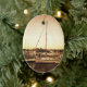 Este ornamento do clássico caracteriza uma foto do retro-estilo de um veleiro na lagoa da enguia no furo das madeiras, Cape Cod.