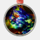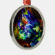 O ornamento do vitral contem cores vívidas brilhantes como azuis marinhos, vermelho, roxo, ouro, chartreuse, alaranjado, e marrom.