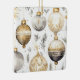 Enfeites de natal Dourados, prateados e pretos parecem elegantes neste padrão de aquarela vintage. Eles são elegantes neste belo ornamento de feriado. Você pode editar a saudação "Feliz Natal" que está em cor dourada a preto no reverso. Além disso, lembre-se de editar os nomes "de" e o ano do exemplo.