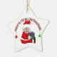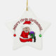 Você pode facilmente mudar o ano deste adorável ornamento de natal de Papais noeis latinos Baby 1rua antes de fazer o pedido. Possui um bebê em um terno de papai noel vermelho e boné de estocagem e texto que diz "O Primeiro Natal do Bebê!".