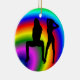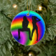 A fêmea lésbica do arco-íris mostra em silhueta enfeites de natal.