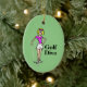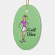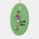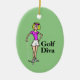 Um enfeite tão divertido para dar à mulher golfista que você conhece nas férias como um lembrete anual para sua árvore todo ano de seu amor, amizade ou gentileza. As palavras "Golf Diva" na frente podem ser removidas. No verso personalize isso com seu nome e ano. Ou coloque o que quiser nas costas. Devido ao estilo design, você só pode comprar isso em ornamentos OVAL. Desenhado por Sheila Cicchi, Brownielocks.com. Todos os Direitos Reservados.