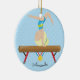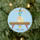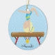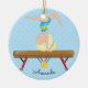 Personalize & os enfeites de natal datado que caracterizam um gymnast louro bonito que faz um suporte principal em um feixe de equilíbrio ajustado em um fundo azul das bolinhas com uma fita #1. Um presente do Natal da maravilha sure a ser estimado por muitos próximos anos.