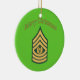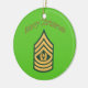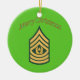Sargento do Comando do Exército Major Enfeites de natal. Este ornamento é decorado de um lado com a insígnia Major do Sargento do Comando do Exército e as palavras "Feliz Natal" e, do outro lado, com o Santa Claus carregando um saco de doces.
