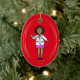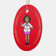 Este ornamento apresenta uma médica negra ou afro-americana segurando seu estetoscópio. O verso do ornamento pode ser personalizado com um NOME e o ANO que você quiser. Isto faz um presente de excelente para qualquer pessoa na família que seja um médico para ser representado na árvore de Natal, ou apenas para o seu médico favorito como um presente seu. Devido ao estilo design, isso só pode ser adquirido em ornamentos OVAL. Desenhado por Sheila Cicchi, Brownielocks.com. Todos os Direitos Reservados.