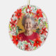 Este elegante ornamento comemorativo de Natal de dois lados é uma maneira sincera de lembrar um amado. A frente mostra uma foto personalizada, cercada por uma coroa festiva de galhos de pínus, bagas vermelhas e poinsetos vermelhos. O rico verde e as cores quentes criam uma sensação de feriado aconchegante, fazer-a de um bem-estar apreciado. As costas podem ser personalizadas com seu nome, datas, ou uma mensagem especial, oferecendo uma lembrança amorosa que será preciosa por anos. Perfeito para honrar sua memória, esse ornamento combina calor e sofisticação, celebrando sua presença durante o feriado.