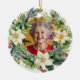 Este elegante ornamento comemorativo de Natal de dois lados é uma maneira sincera de lembrar um amado. A frente mostra uma foto personalizada, cercada por uma coroa festiva de galhos de pínus, bagas vermelhas e poinsetos brancos. O rico verde e as cores quentes criam uma sensação de feriado aconchegante, fazer-a de um bem-estar apreciado. As costas podem ser personalizadas com seu nome, datas, ou uma mensagem especial, oferecendo uma lembrança amorosa que será preciosa por anos. Perfeito para honrar sua memória, esse ornamento combina calor e sofisticação, celebrando sua presença durante o feriado.