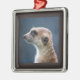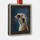 Este meerkat bonito e brincalhão adoraria um lugar bem na sua árvore de Natal. Meerkats são nativos de desertos e prados. Os seus pêlos rochosos, listrados, rostos pequenos, pontiagudos e grandes olhos dão-lhes um aspecto distintivo. A imagem está rodeada de um castanho esticado e emoldurada em metal prateado. As costas são todas metálicas.