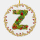 enfeites de natal monogrammed iniciais de Z - círculo. Esta decoração requintado da árvore de Natal da letra Z dará a seu xmas um toque tradicional com uma sensação personalizada moderna. Projetou olhar como uma árvore de abeto coberta com os presentes e os presentes esta letra a em um ornamento circular são cercados por um quadro do ouro com bagas vermelhas. De luxo e tenda sobre isto é um luxo disponível para você necessidades da decoração do feriado. Dobre tomado partido para o impacto extra este verde e a imagem vermelha em um fundo do branco nevado é um favorito com negócios igualmente. Alfabeto completo disponível.