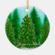 Design de pinheiro de arte original decorado para o Natal em uma floresta de inverno pelos designers de Ornamentation desejando um "Joyeux Noel" para auto-falantes franceses.