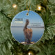 Crie uma marca personalizada de férias com este Enfeites de natal de cerâmica personalizável, com uma bela foto Pelican e um design de "Feliz Natal". Perfeito para presentes únicos de férias ou decoração doméstica.