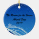 Bela Silhueta Personalizada Cena de Natividade em tons de azul e branco com céu estrelado e flocos de neve.