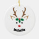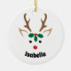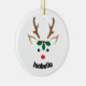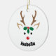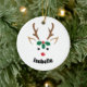 Nosso ornamento personalizado da face das renas de Natal é de dois lados, e apresenta um nariz vermelho distinto, orelhas, galhadas e sagrado festivo. É ideal para fazeres de condecoração para toda a família. Personalize com um nome ou o texto de sua escolha.