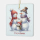 Enfeites de natal Personalizado da Família Snowman com uma linha de personalização na frente e duas linhas de personalização na parte de trás.