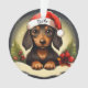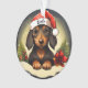 Apresentando nosso encantador Ornamento de Natal Dachshund, o complemento perfeito para trazer calor e alegria ao seu decoro de Natal! Adorado com um chapéu festivo de Natal e olhos brilhantes com alegria de férias, este lindo desenho animado Dachshund está pronto para encher sua casa de alegria. O vibrante chapéu vermelho de Natal adiciona uma feliz de cor, completa com um pom branco fluffy que parece dançar com prazer. Você pode alterar o nome do cachorro ou apagá-lo. No verso está a citação de "Feliz feriado, 202X". Este texto também pode ser alterado. Para o amante de Dachshund, este Ornamento deve receber elogios de todos que o veem. Peça o seu hoje, e deixe este maravilhoso filhote espalhar o espírito natalino pela sua casa!