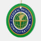 Este item é decorado de um lado com o logotipo da Administração Federal de Aviação (FAA) dos Estados Unidos, e do outro com um chapéu de Papai Noel que pode ser personalizado com um nome.