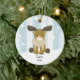 Enfeites de natal de alce giro cercado por árvores de inverno e fundo de neve. Personalizar com nome e ano.