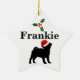 Decore sua árvore de Natal com um destes enfeites de natal personalizados adoráveis do pug! Apenas personalize-o com nome dos seus puggy ao lado da silhueta e do azevinho do pug!
