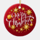 Bela volta de Natal Ornament, com estrelas cintilantes ouros, Enfeites de natal e Feliz Natal escritos em tipografia branca sobre fundo vermelho, dá-lhe uma aparência festiva. Presente de feriado perfeito para a família ou amigos.
