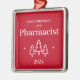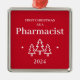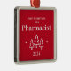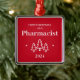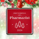Primeiro Natal como um adorno vermelho farmacêutico para um formando. Decoração de Natal elegante com árvores e estrelas de Natal.