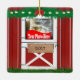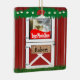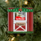 Enfeites de natal feitos sob encomenda vermelhos da porta de celeiro com a janela da foto em ambos os lados. Transfira arquivos pela rede suas fotos para substituir a foto da amostra. Há igualmente um sinal da porta de celeiro em ambos os lados com texto que pode ser personalizado.