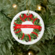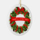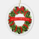 Enfeites de natal apresentado em forma redonda e feito de porcelana com design de impressão de coroa de feriado. Personalize este item ou comprar como está.