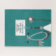 Quebra-cabeça de enfermeira criativa com esfregões hospitalares, estetoscópio e faca suíça. Edite texto para adicionar o nome da sua enfermeira favorita.