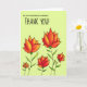 Cartões de agradecimentos para um amigo com uma adorável trabalho de arte de aquarela botânica de flores laranja em cores brilhantes sobre fundo verde claro com o texto personalizável: "Para o meu fantástico amigo: Obrigado!".