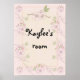 Flores cor-de-rosa no fundo rosa e amarelo fazem uma adorável poster para o berçário ou quarto de menina de bebê ou de menina. Personalize com o nome da menina. Arte floral por Trina Clark em digiscrapkits.com