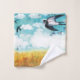 Um bando de Swallows sobrevoando um campo de trigo. As andorinhas que sobrevoam o céu azul durante a estação de Verão - Livro Ilustração para um livro de fotografia "O espantalho e a andorinha" (Escrito e ilustrado por Julia Doria). Presente perfeito para a natureza e amante de pássaros.