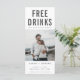 Estes guardam as datas são para o casal divertido que mal pode esperar para compartilhar sua data de casamento com sua família e amigos. Foto moderna "Bebidas grátis (e vamos nos casar) O design de cinza de tipografia de é personalizado com sua foto, nomes, data de casamento e local.