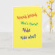 Este engraçado cartão de aniversário atrasado tem uma piada de batida que começa, Knock knock. Quem está aí? Aida. Aida quem? - Você terá que ler a dentro para ver o que mais ela diz. — As letras são brincalhonas, divertidas e coloridas, num fundo amarelo. Você pode mudar isso se quiser. — Dentro do cartão de saudação diz Feliz Aniversário Atrasado. Você pode adicionar sua própria mensagem personalizada com a ferramenta de texto. Pressione o botão personalizar ou personalizar para adicionar mais palavras. - Veja carros mais humorísticos e de aniversário no Lápis de Alina.