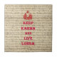 Engraçado e humorístico tomar o popular slogan "mantenha a calma" com um tema budista. Texto vermelho "Keep Karma and Live Longa" em uma ilustração antiga do livro Buda, antiga, em um fundo de papel antigo.