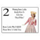 A mesa do estilo gráfico vertical Bunco apresenta uma rainha real do Bunco com coroa, pérolas e dados Bunco. As placas de mesa Bunco são uma forma excelente de ajudar os jogadores Bunco a fazerem a transição da mesa para a mesa. As Senhoras De Bunco Ganhadoras Suavemente Fiquem Na Mesa Da Cabeça E Sentem-Se Num Trono Diferente. Senhoras Do Bunco Que Falharam, Por Favor Mudem-Se Para A Mesa Três. Cartão engraçado para adicionar à sua caixa Bunco ou bolsa Bunco. Rainha nº 2