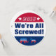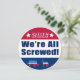 Não está satisfeito com nenhum dos candidatos às Eleições 2016? Então esta design é para você. Este design circular apresenta seções vermelhas, brancas e azuis. A seção vermelha superior tem o ano de 2016 entre duas estrelas todas em branco esboçadas em azul. A seção de centro branco tem texto que diz, "Estamos todos lixados!" em texto azul esboçado em vermelho, e a seção de baixo azul tem um burro estilo Democrata e um elefante estilo Republicano esboçado em branco.