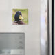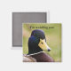 Um pato azul e cinza com um beco amarelo com palavras dizendo que estou te observando faz uma imã de geladeira engraçada então as pessoas não te levam a ser comida.