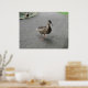 Esta impressão apresenta uma fotografia de um pato engraçado caminhando através de um caminho concreto. Este pássaro apimentado tinha saído de um lago e estava à caça de pão num parque tranquilo.