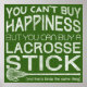 Outro design de Engrenagem de Jogo original! Disponível em impressões e posters de canvas. Estes fazem presentes de excelente para a sua família e amigos doidos de esporte, ainda melhor, ganhem um! Perfeito para escritórios, salas de estar, cavernas de homem, jardins, cavernas de senhora, etc. Engraçado design de lacrosse, o texto diz: Você não pode Comprar a Felicidade. Mas você pode Comprar um bastão de Lacrosse e isso é a mesma coisa. Grande excelente design para camisetas e capuzes!