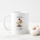Engraçado "Mas primeiro café", frango temia caneca de café.