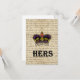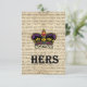 Texto divertido "dela" com uma ilustração da coroa roxa num pano de fundo manuscrito de papel antigo.