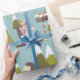 Envie seus entes queridos e presentes amigos que estão embrulhados neste papel de embrulho divertido e peculiar para os feriados. Este design apresenta ouriços verificando suas caixas de correio com árvores cobertas de neve contra fundo azul.