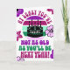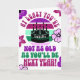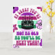 Engraçado, pelo menos você não é... cartão de saudação dobrado. Um cartão de aniversário divertido com bolo de aniversário da silhueta em frente a um retrocesso em roxo, cerise, horta verde, esmeralda verde e rosa pálido. O nome no bolo é, evidentemente, personalizável. A saudação na frente do cartão diz, "Pelo menos você não é tão velho quanto você será no próximo ano!" Dentro a mensagem diz "Parabéns", que também é personalizável.