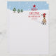 Uma bela e engraçada ilustração de Natal: Uma rena com passos na neve e uma grande tipografia Feliz Natal e uma árvore feliz ano novo de 2024.