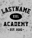 Abraçar a vida escolar com esta gira e engraçada escola doméstica, chamada capuz da "Last Name Academy", com um legal efeito desolador vintage. Personalize com seu sobrenome e ano estabelecidos.