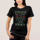 Engraçada Camiseta de Café Café Knit Script Women's T-shirts mostra o texto "Tudo o que quero para o Natal é café" numa tenda escrita de tricô de inverno acentuada com flocos de neve e presentes. Perfeito para festas de Natal e feriados e comemorações. Elaborado por ©Evco Holidays www.zazzle.com/store/evcoholidays