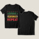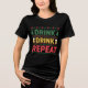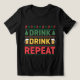 Engraçado Suéter de Natal Feio Beer Script T-shirts femininas apresenta o texto "Drink Drink Drink Repeat" numa tenda escrita de tricô de inverno destacada com renas, árvores de Natal e canecas de cerveja. Perfeito para festas de Natal e feriados e comemorações. Elaborado por ©Evco Holidays www.zazzle.com/store/evcoholidays