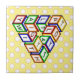 Ofereça ao seu amigo este legal azulejo cerâmico com este triângulo impossível feito de blocos de brinquedos de madeira em fundo amarelo. Um triângulo impossível na forma de blocos de brinquedos de madeira. Também conhecida como transformação impossível ou construção impossível. Você encontrará muitos na internet, mas eu acho que o meu é muito bem executado.