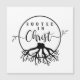 Enraizado no Cristo, este design apresenta um design preto e branco com raízes de uma árvore e texto dizendo "Enraizado no Cristo".
