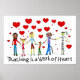 Presente perfeito para o professor especial em sua vida. Uma forma EXCELENTE de deixar os educadores saberem que são apreciados. Apresenta trabalho de arte de criança em cores vibrantes retratando os bigg'uns e os pequenos de mãos dadas e cercados por corações.
