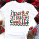 Comemore a temporada de festas com uma camisa divertida e festiva que é perfeita para professores que adoram seus alunos. Apresentando biscoitos de pão de gengibre e uma frase bonita, "Ensino os Cookies Mais Inteligentes", esta camisa é ideal para espalhar alegria de Natal na sala de aula. Projetado com retrorreflectores e tipografia divertida, ele certamente se torna um favorito para a temporada de festas. Quer você esteja dando a si mesmo ou a outro professor, esta design combina espírito festivo e humor, fazer uma adição alegre a qualquer armário.